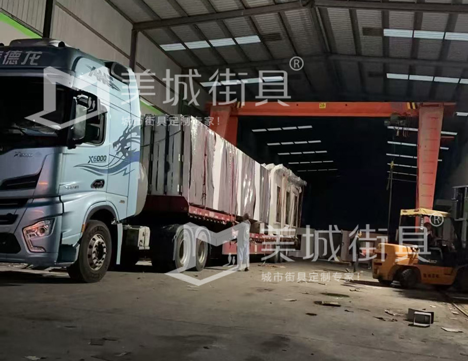 江蘇美城街具為新疆定制公交候車(chē)亭第五車(chē)發(fā)貨案例